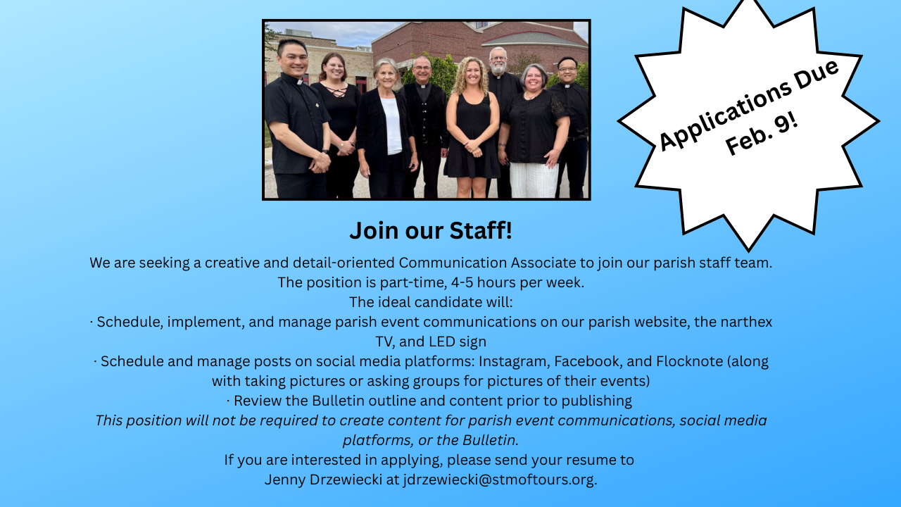 If you would like an event mentioned in our parish bulletin, please email bulletin@stmoftours.org.